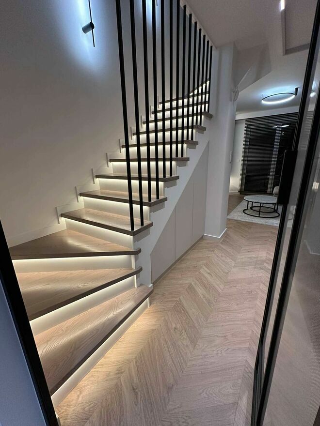 Schody są czterokrotnie lakierowane natryskowo lakierem poliuretanowym, dwuskładnikowym niemieckiej firmy Rosner. Zapewniamy ze swojej strony kompleksową usługę począwszy od pomiaru a skończywszy na najdrobniejszych szczegółach przy montażu, by sprostać Państwa oczekiwaniom.