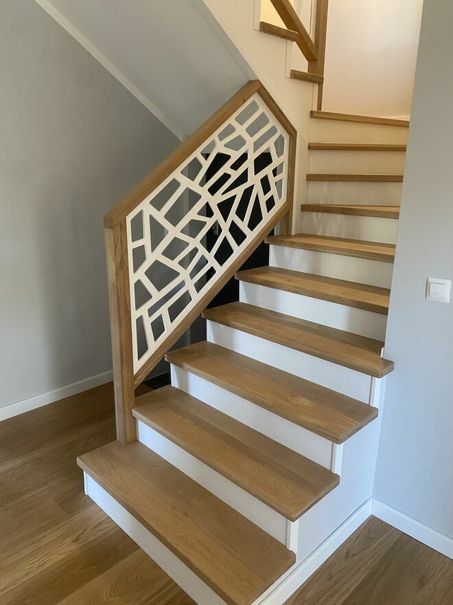(posiadamy w ofercie wszystkie drewna krajowe i egzotyczne) wraz z balustradą (wzór do wyboru).